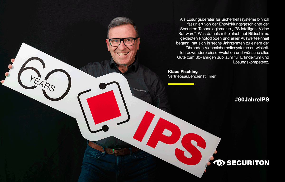 60 Jahre IPS Intelligent Video Software – für unsere Technologiemarke weit mehr als ein Jubiläum. Eine beeindruckende Geschichte voller Teamwork und unzähliger gemeinsamer Erfolge. Mit Stolz und Dank gegenüber unseren Kunden begehen wir bei Securiton das Jubiläumsjahr.